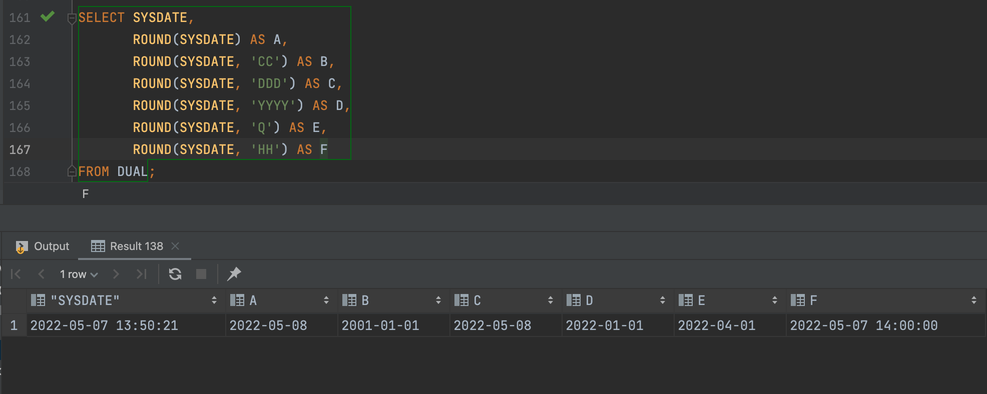 | 날짜 데이터 | ROUND([날짜데이터(필수)], [반올림 기준 포맷(선택) - default 'DDD']) |