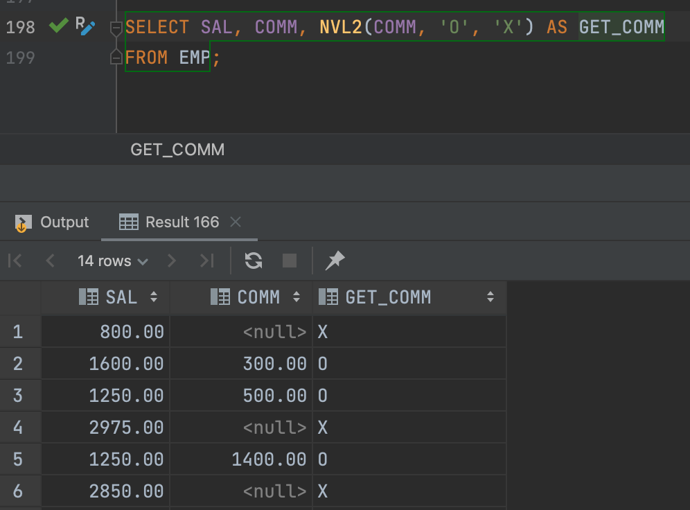 NVL2 함수는 NVL 함수와 비슷하지만, 데이터가 NULL이 아닌 경우 역시 반환할 데이터를 변환하고자 할 경우 사용합니다.