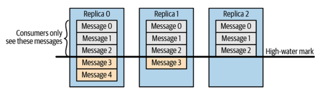 파티션 리더에 존재하더라도 모든 데이터를 클라이언트가 읽을 수 있는 건 아니다. 대부분의 클라이언트는 모든 인-싱크 레플리카에 쓰여진 메시지들만 읽을 수 있다.
