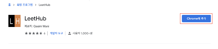 LeetHub은 위 페이지를 통해 확장 프로그램을 Chrome에 추가할 수 있습니다.